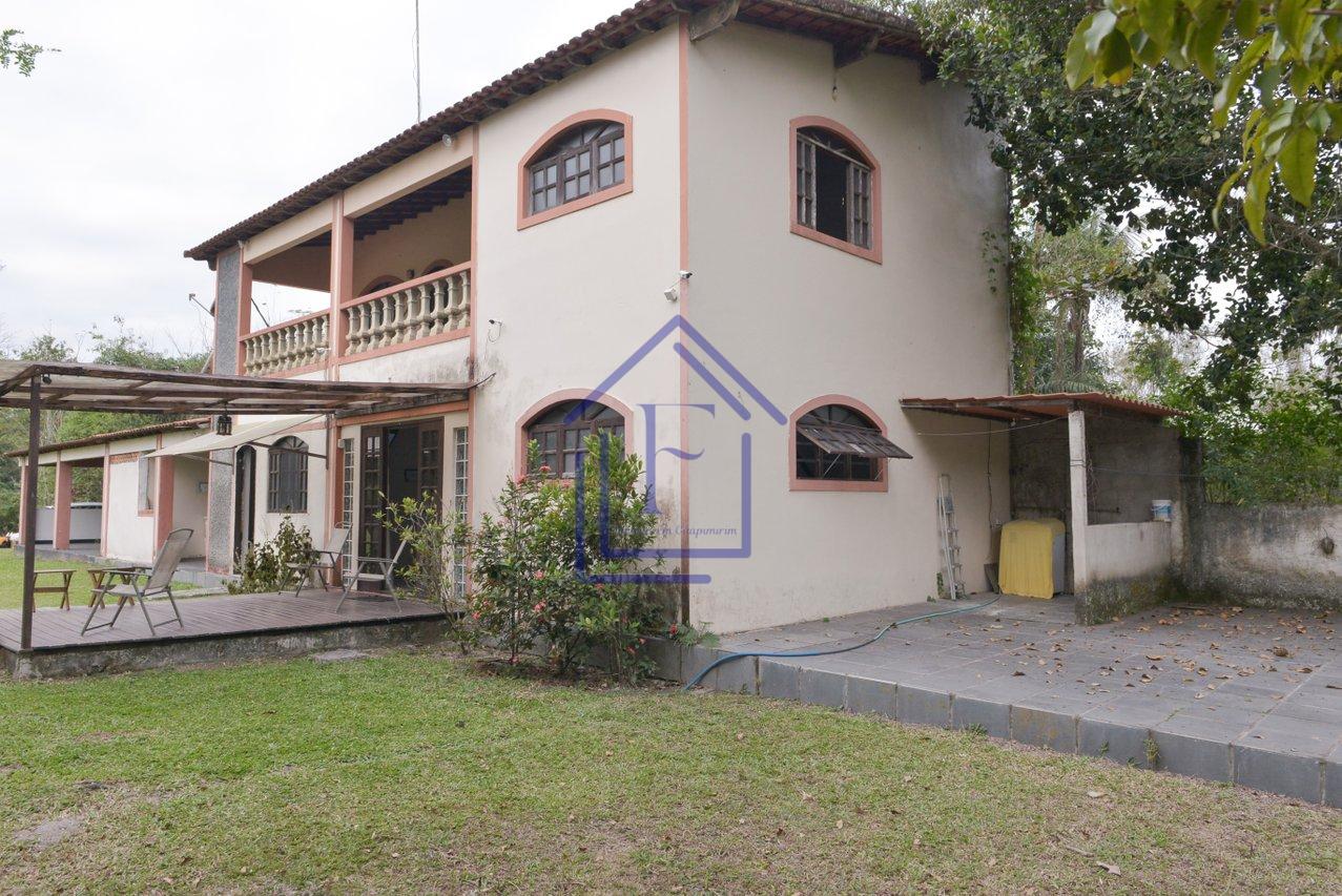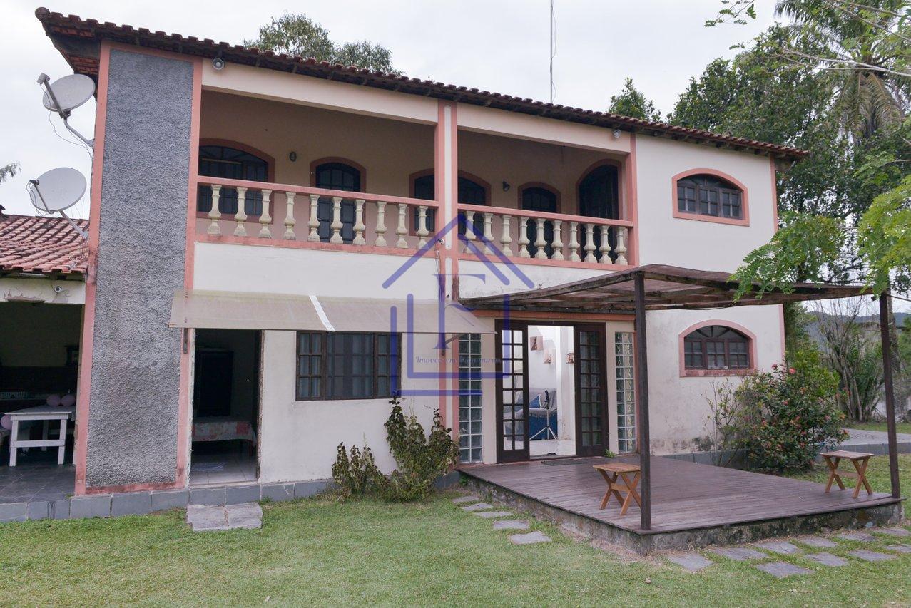 Sítio com 3.000m² em Guapimirim composto de casa duplex com 1º pavimento: sala, cozinha, 3 quartos sendo 2 suítes, saleta, varanda, 5 banheiros, área de serviço. Área externa com salão de jogos, espaço gourmet com churrasqueira, piscina, campo de futebol, árvores frutíferas, jardins. Local com muito verde e tranquilidade. Oportunidade de realizar eventos e locação, mobiliada. Aceita financiamento bancário e permuta.